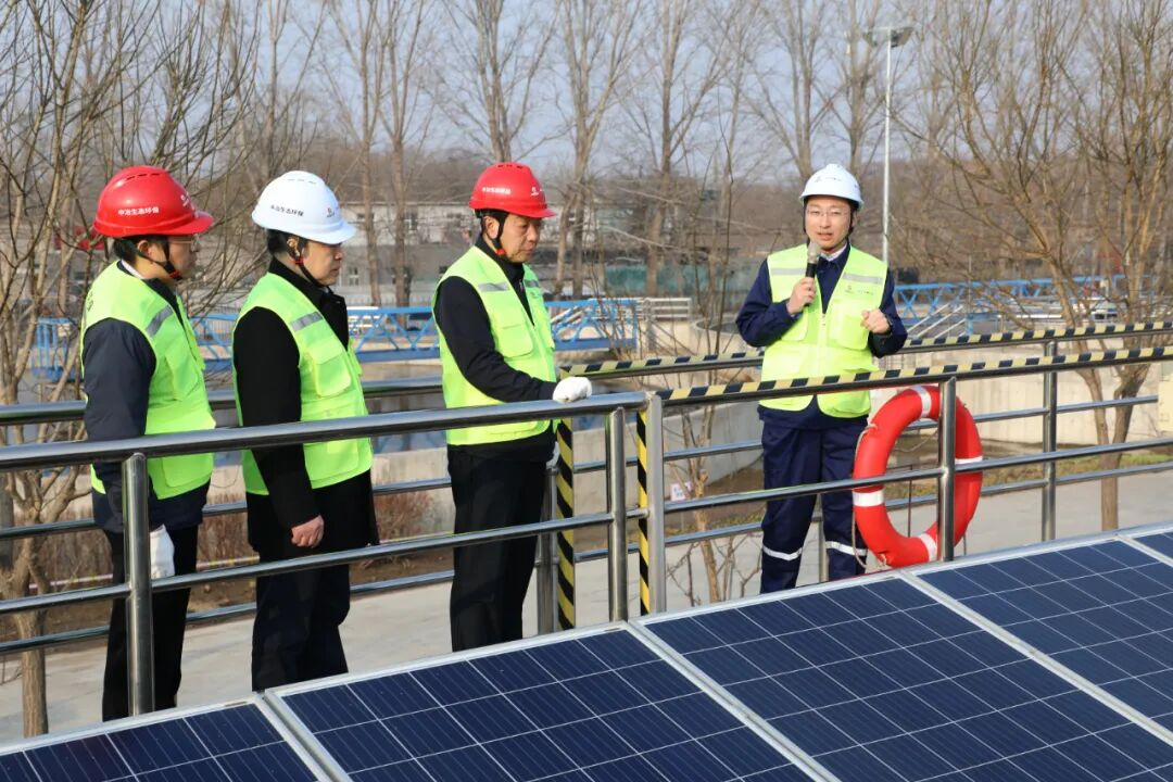 图为陈得信察看良乡污水处理厂光伏发电情况